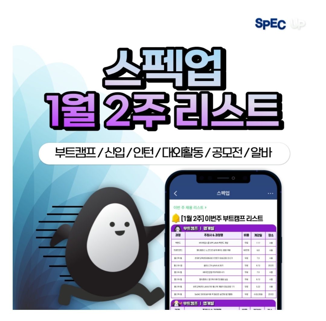 스펙업<대외활동 리스트>의 스펙업 추천 대외활동 카테고리를 보면, 코스닥협회의 대학생 ㅇㅇㅇ 모집 공고를 확인 할 수 있는데요. 여기서 ㅇㅇㅇ은 무엇일까요?(초성힌트 : ㄱㅈㄷ)