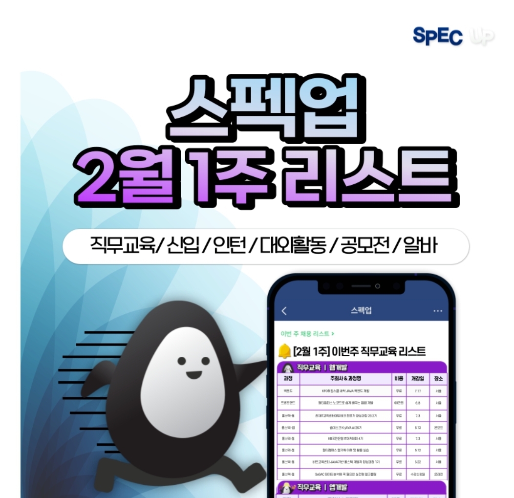 스펙업<대외활동 리스트>의 스펙업 추천 대외활동 카테고리를 보면,