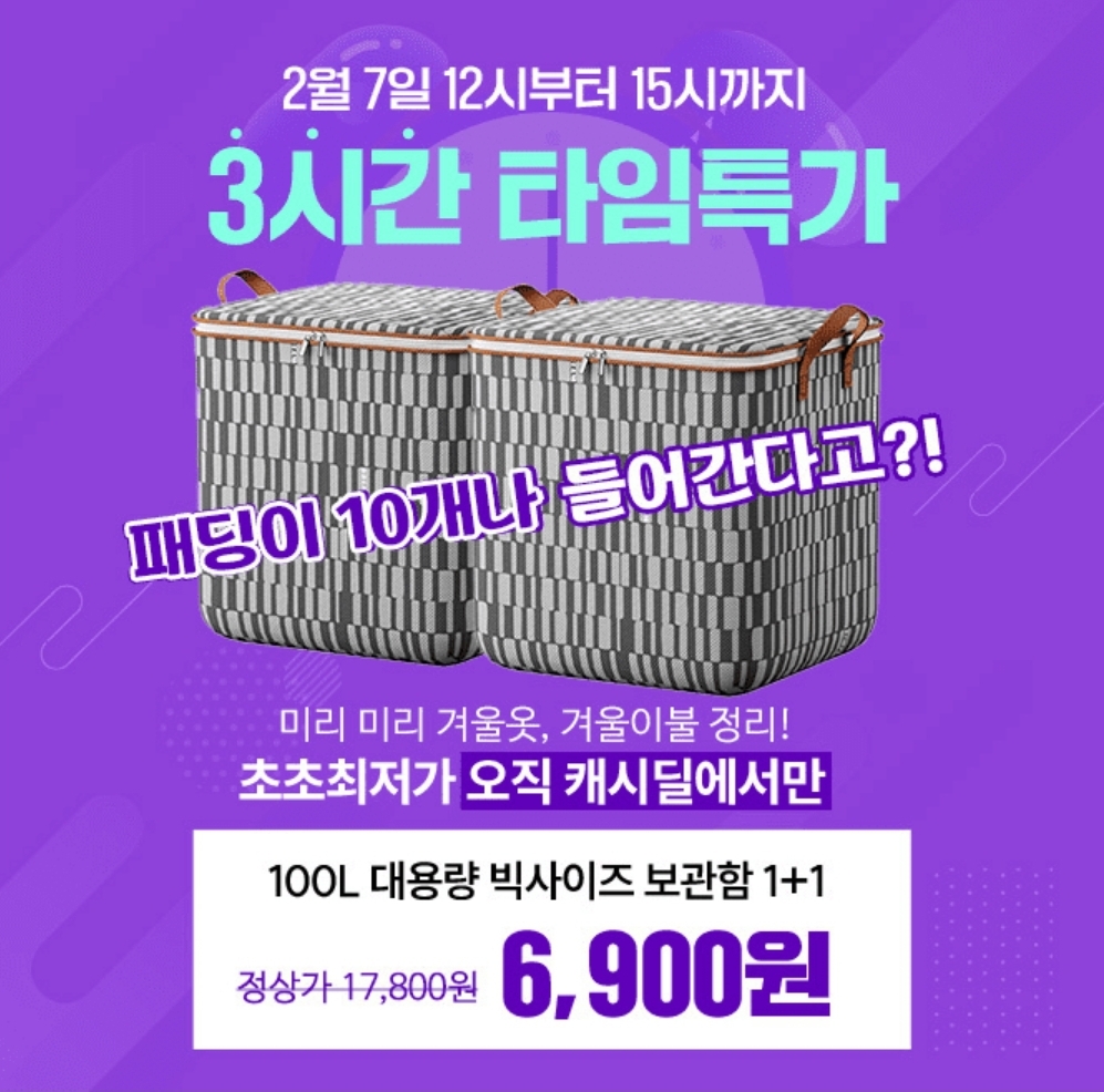 1+1 100L 대용량 빅사이즈 보관함 6900원 무배 캐시워크 용돈퀴즈정답 2월7일 수요일
