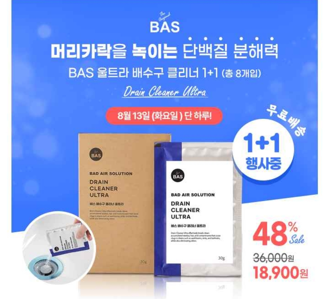 1+1 BAS 울트라 배수구 클리너 (총 8개입)