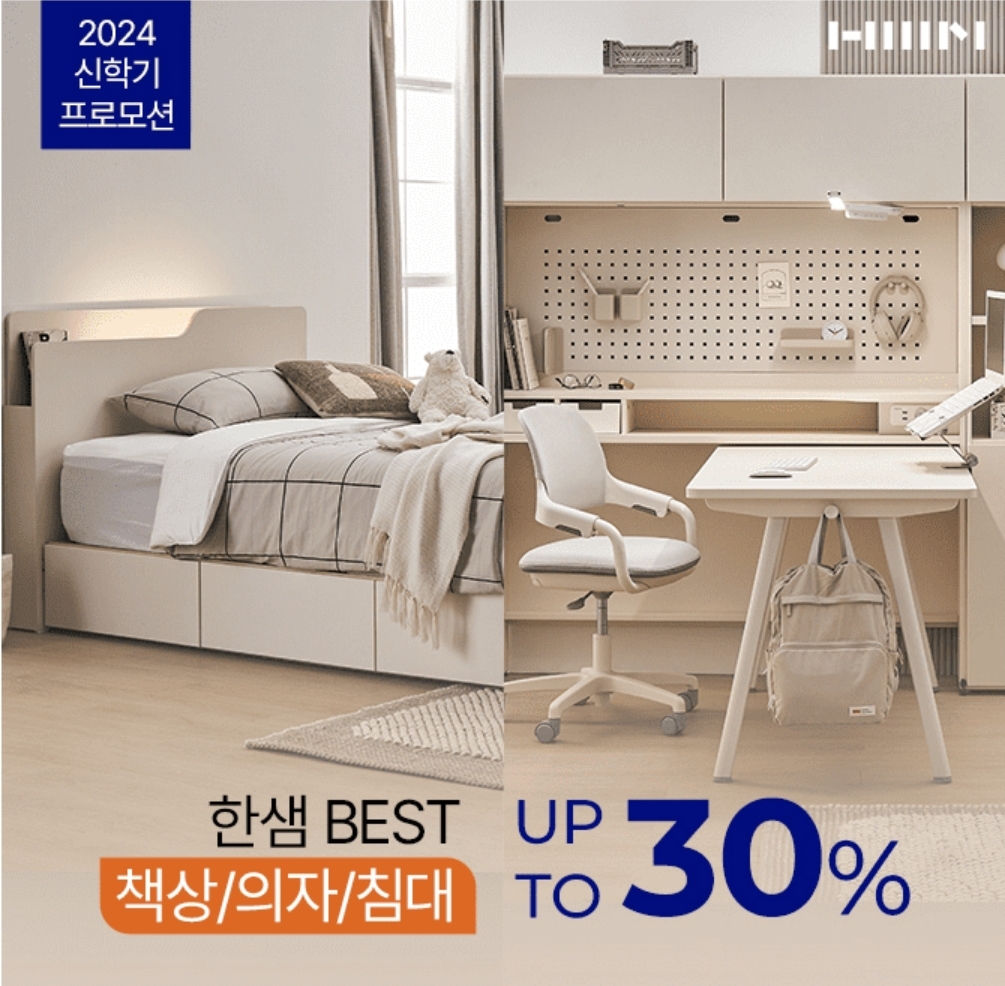 2024년 신학기 한샘 책상/의자 침대 ~30% 할인