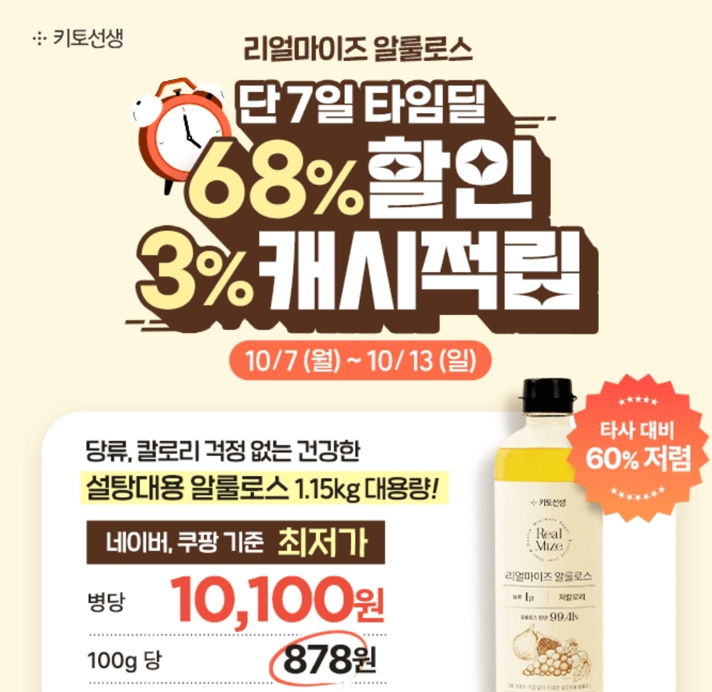 # [타임딜] 단 7일간 알룰로스 68% 할인 & 1.15kg 대용량 병당 10,100원 (+3% 캐시적립)