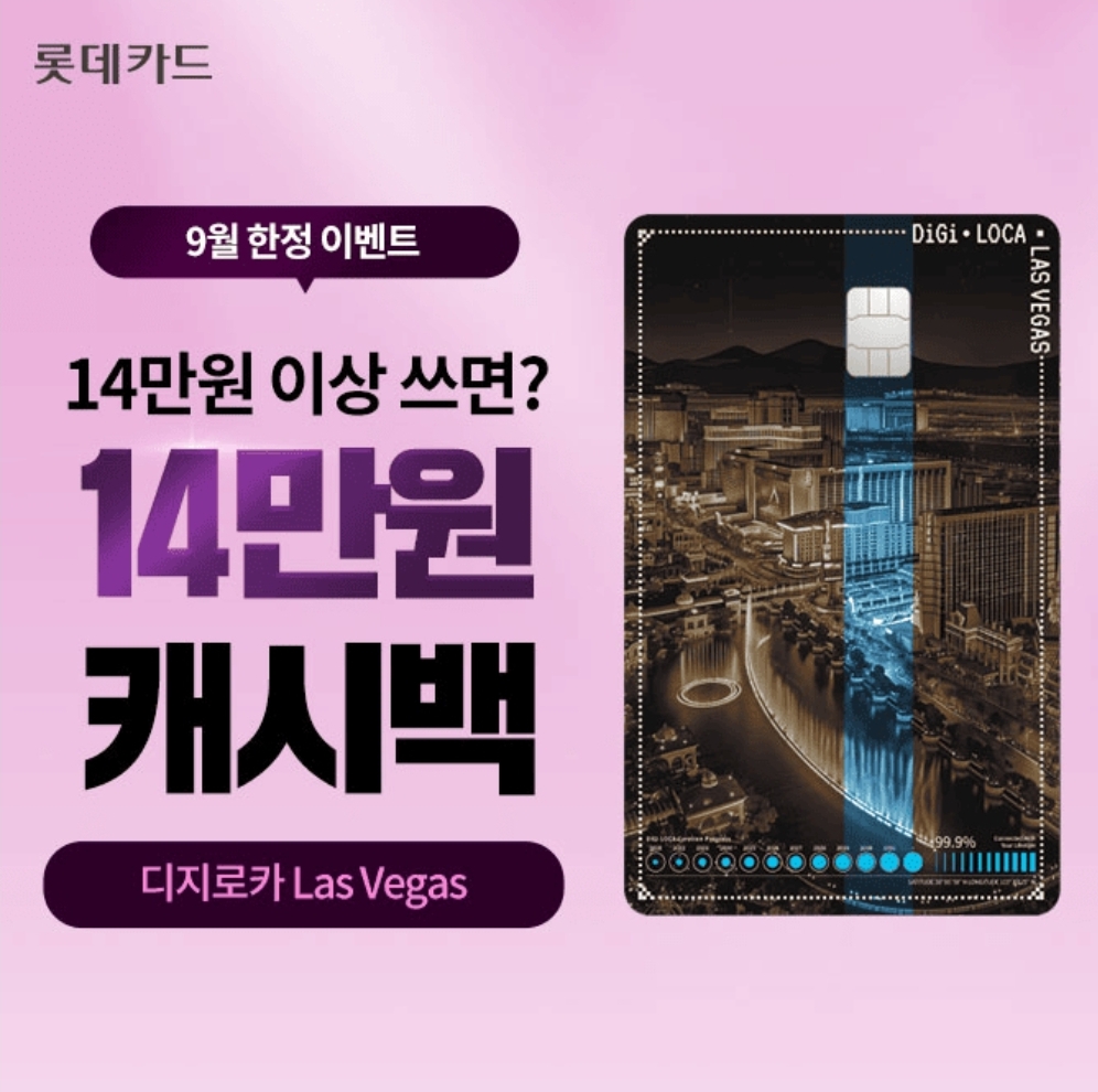 디지로카 Las Vegas는 실적조건 없이 최대 ㅇ% 할인은 기본입니다. 거기에 9월 한정, 14 만원 이상 쓰면? 14만원 캐시백까지! 여기서 ㅇ에 들어갈 숫자는 무엇일까요?
