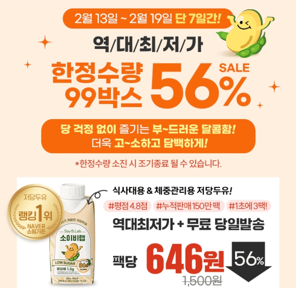 [단 99박스] "누적판매량 150만팩" 소이비랩 한정수량 56% 할인!