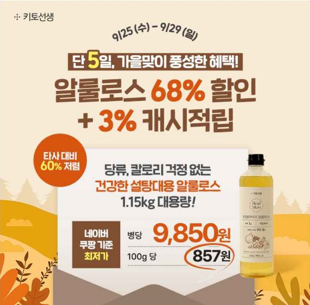 [단 5일] 가을맞이 풍성한 혜택! 리얼마이즈 알룰로스 68% 할인!