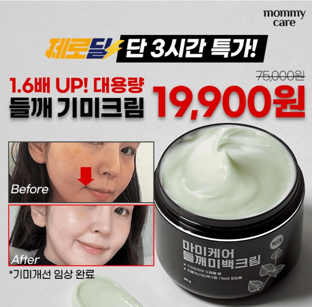 3시간동안 진행되는 캐시딜 타임특가에서 대용량! 마미케어 강남약국 들깨 기미크림 80g이 역대급할인 19,900원+무료베송에 진행됩니다.일반 미백화장품보다 강력한 미백효과를 가진 ㅇㅇ를 60%이상 함유한 이 크림은 임상 증명에도 성공한 속기미 관리 제품입니다. 빈칸에 들어갈 글자는 무엇일까요?
