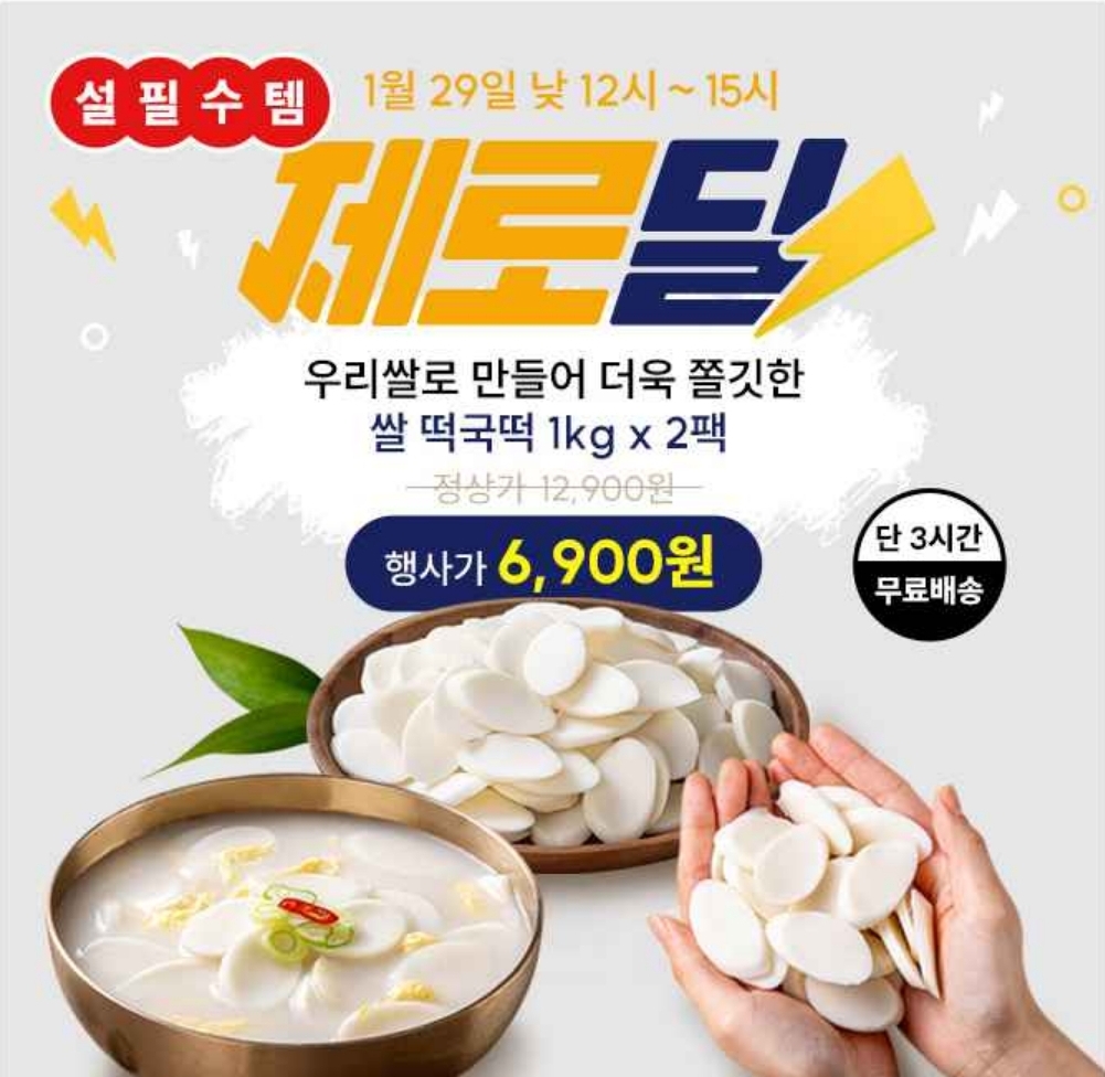 국내산 쌀 떡국떡 1kg+2팩 역대급 할인! 캐시워크 용돈퀴즈 1월 29일 월요일