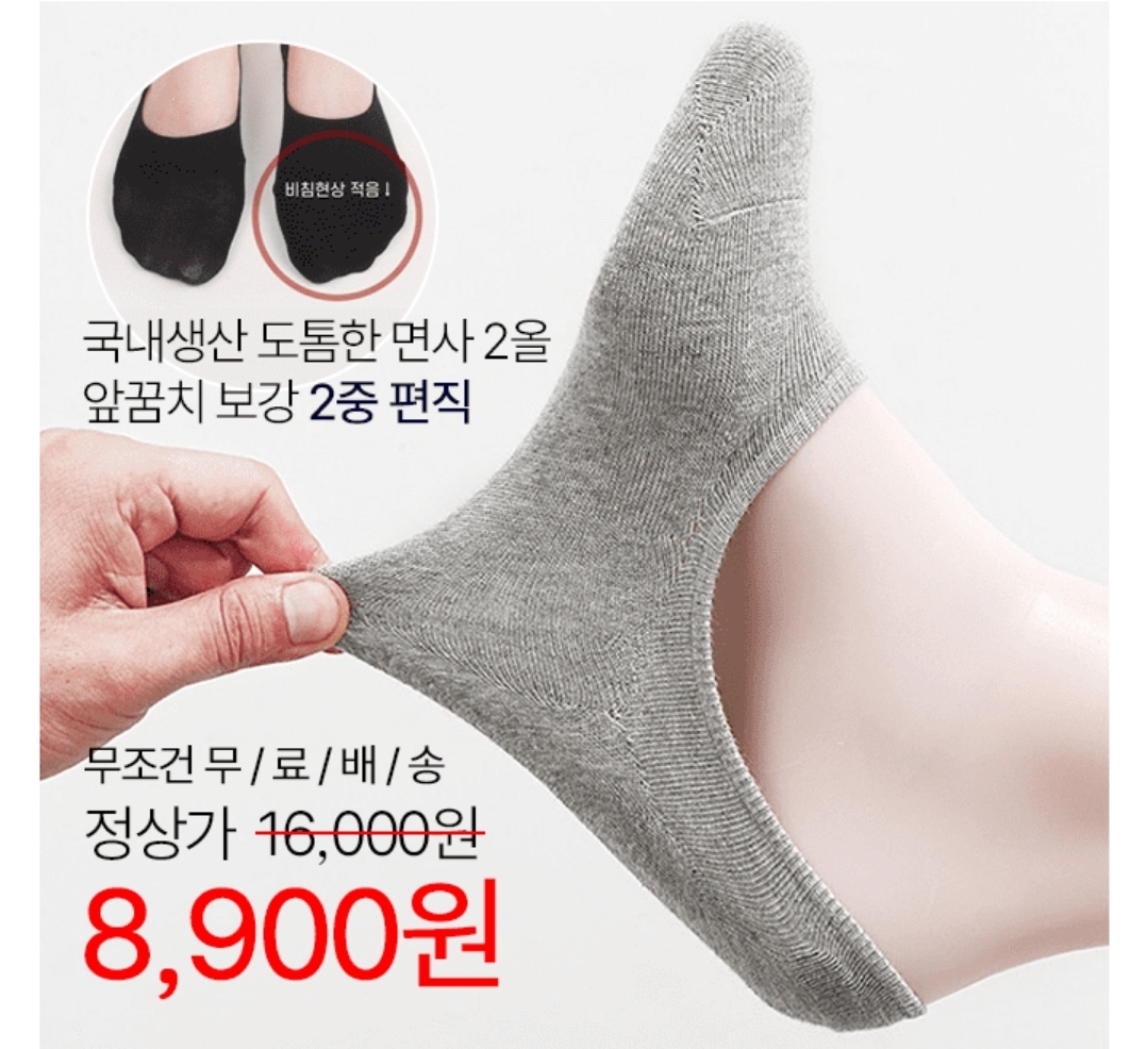 남녀공용 앞코보강 덧신 양말는