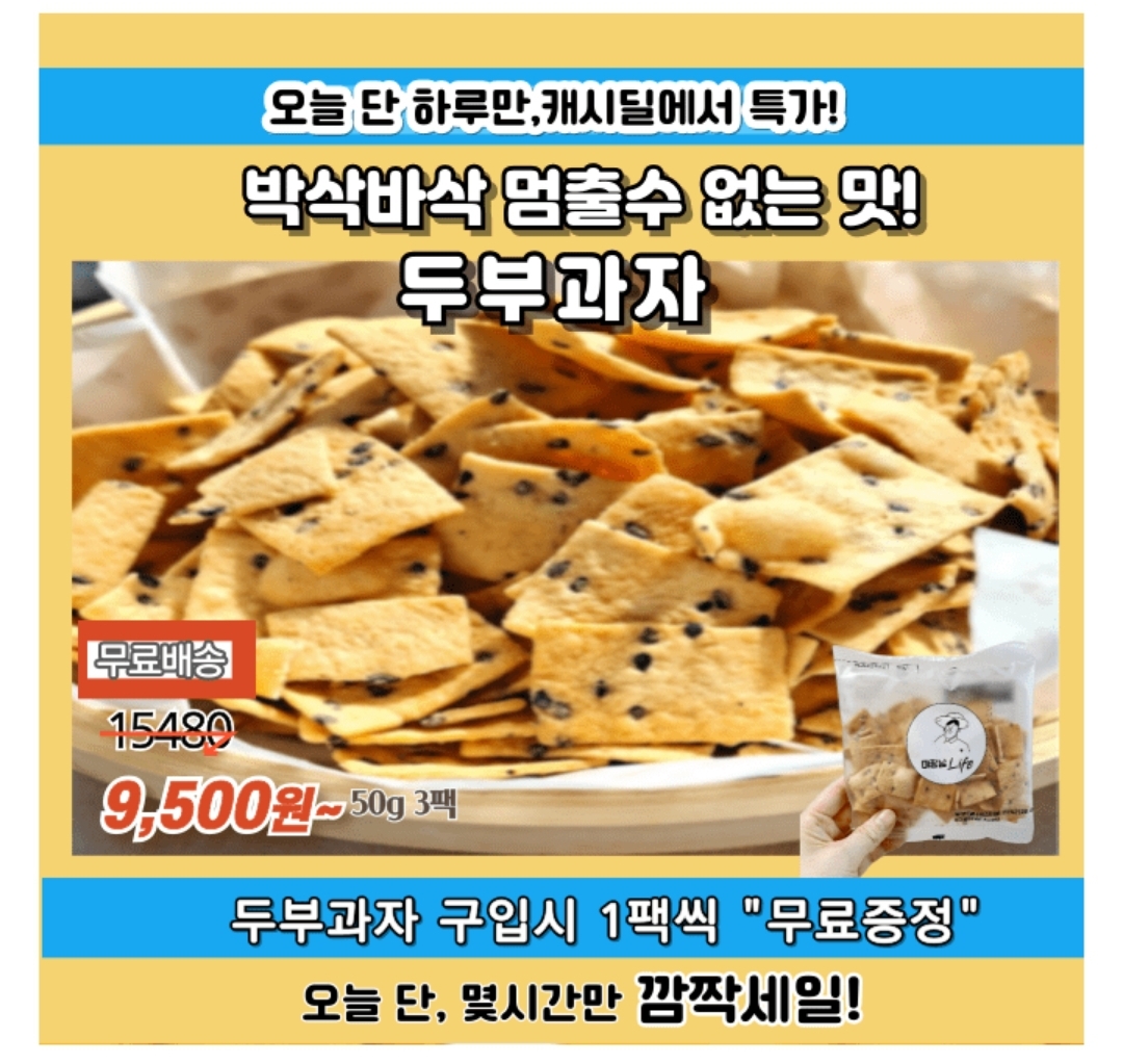 국산 수제 두부과자 50g 3팩 (+1팩 더!) 캐시워크 돈버는퀴즈정답 8월28일 수요일