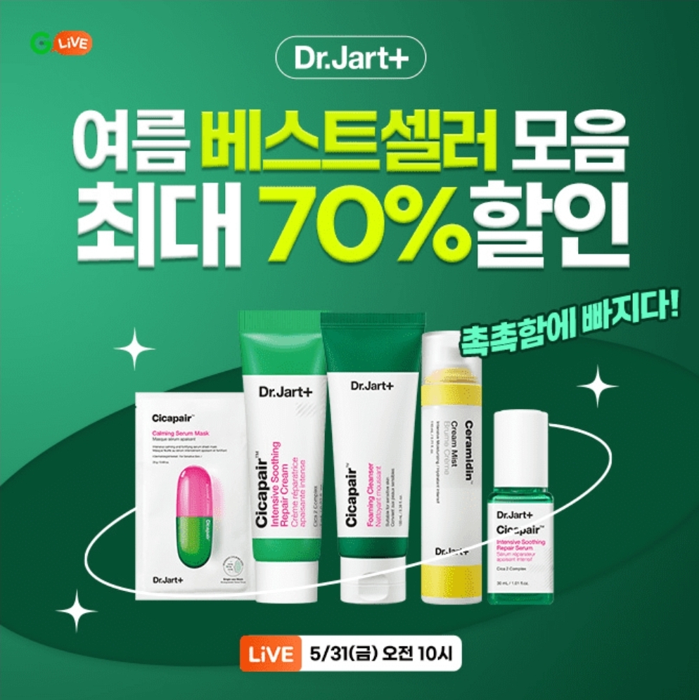 촉촉함에 빠지다, 닥터자르트 00 베스트셀러 총집합전! 라이브 스페셜 최대 70% 할인가로 시원하고 촉촉한 여름나기 준비해요!