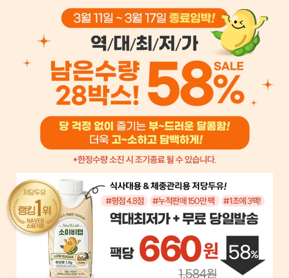 남은수량 단 28박스 소이비랩 한정수량 58% 할인 종료임박