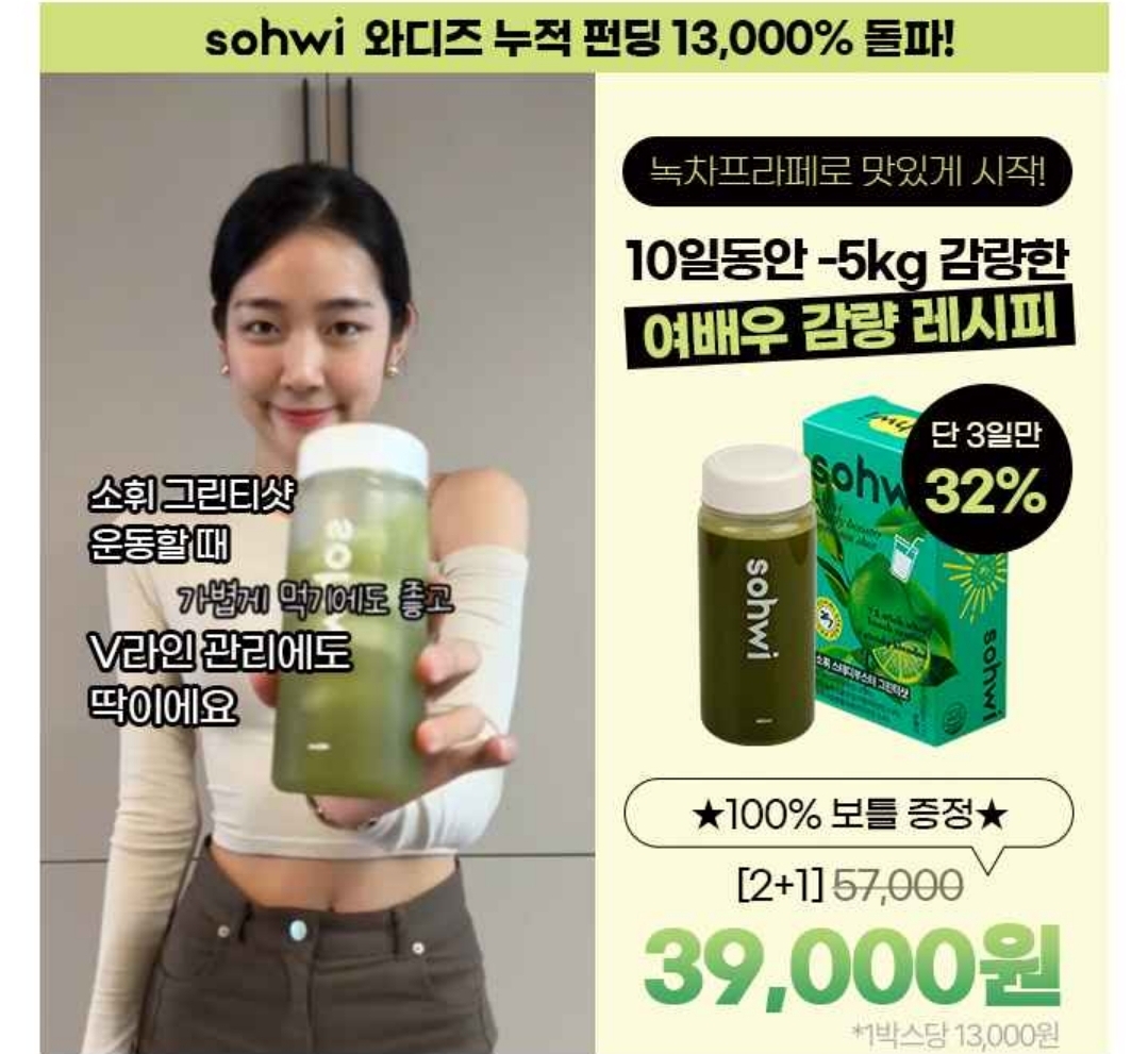 50만 다이어트 커뮤니티 후기 대란템! "옷은 얇아지지만 소휘 그린티샷과 함께라면 긴급관리 걱정없어요" 단4일 6 한정수량 100세트