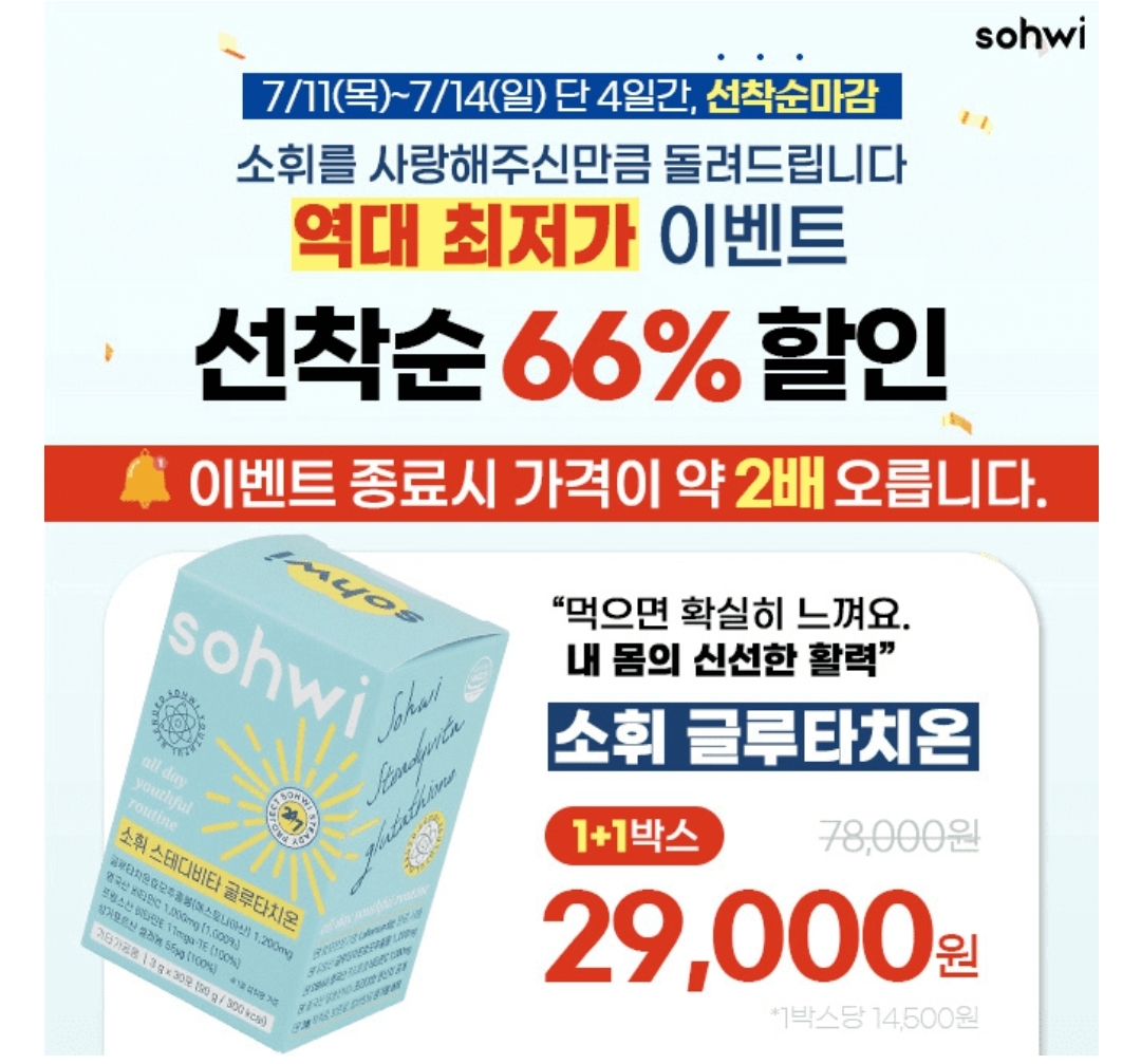 단4일만 66% 소휘 글루타치온 1+1 한정혜택