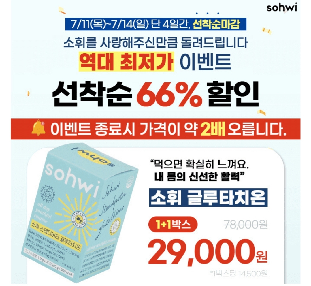 단4일만 66% 소휘 글루타치온 1+1 한정혜택