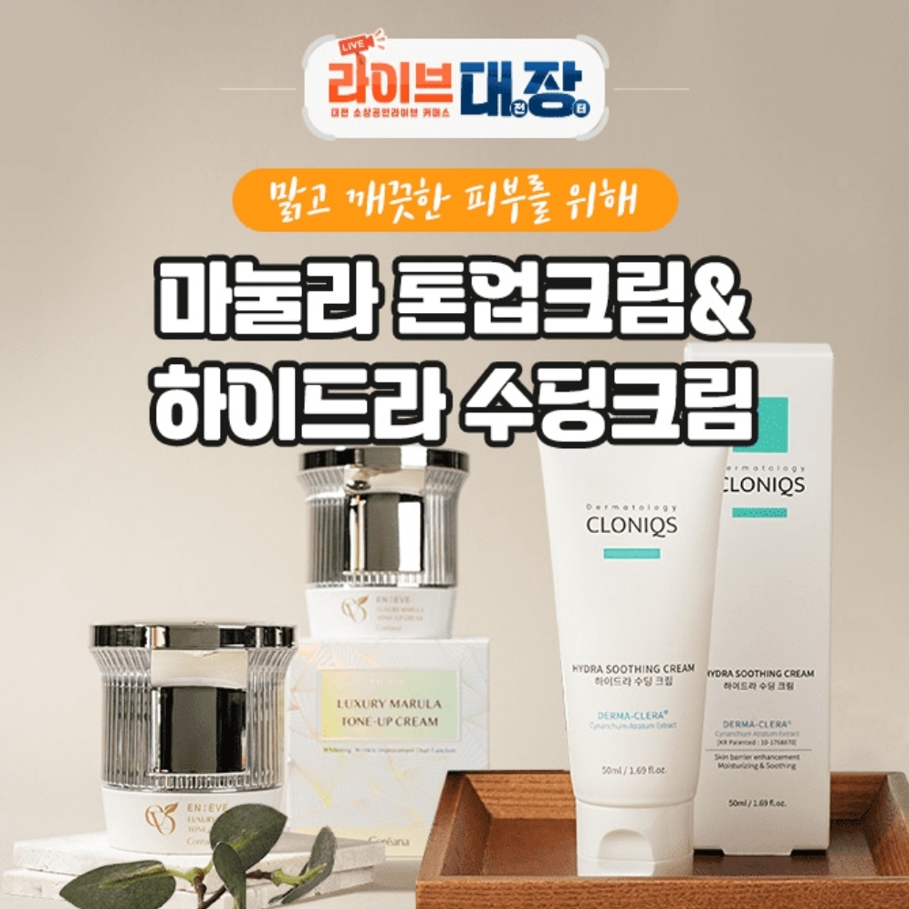 대전광역시 라이브특가로 클로닉스 하이드라수딩크림 50g 23,900원 엔이브 럭셔리 마롤라 톤업크림 50ml 20,900원으로 전상품 무료배송으로 소개드립니다!