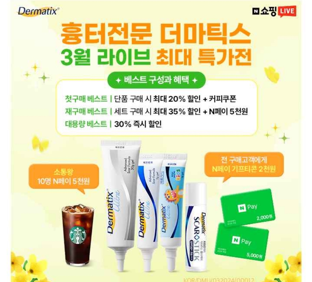첫구매,재구매,대용량까지 베스트 상품 최대 35% 할인에 라이브 중 구매하면 N페이,스타벅스 커피 기프티콘이 쏟아져요~