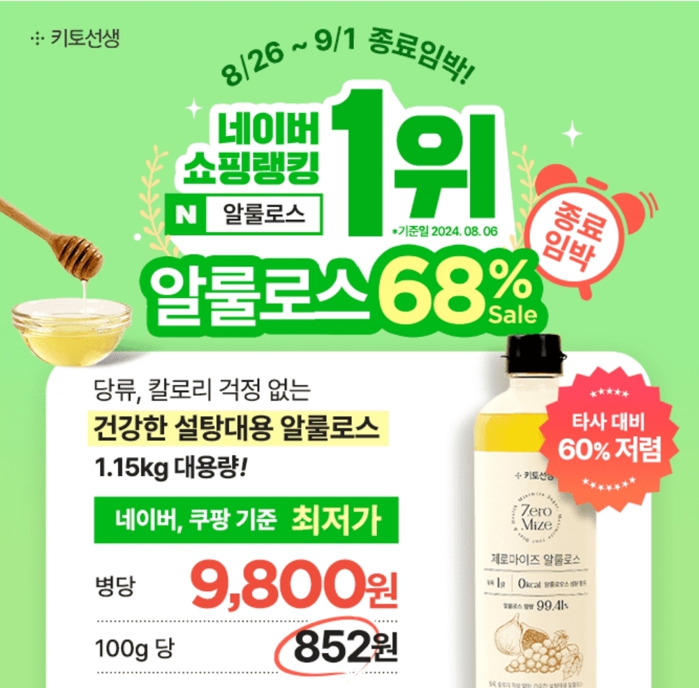 [초특가 종료임박] 네이버 쇼핑 알룰로스' 랭킹 1위 기념 68% 할인 곤 종료!