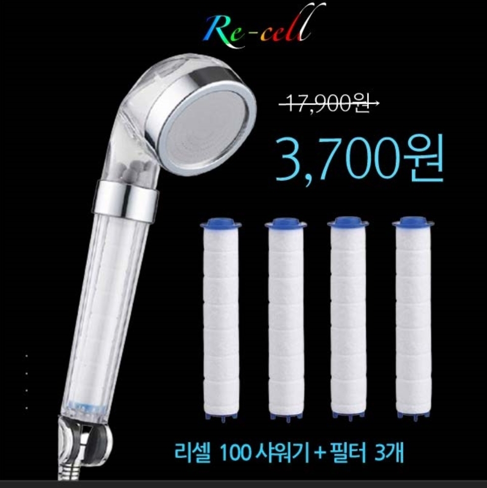 "리셀 100 녹물제거 샤워기는 0단계 필터링 시스템 입니다. 0에 들어갈 단어는 무엇일까 요?
