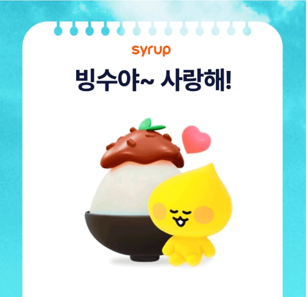 월간 시럽 8월 이벤트! 빙수야~ 빙수야~ 사랑해! 사랑해! 무더운 8월의 간식은 00 팥빙수! 팥빙수 기프티콘받고 더운 여름 시원하게 보내세요! 친구에게 공유하거나 저금통을 두드리면 응모기회를 추가로 받을 수 있어요! 8월 월간 시럽에 참여해보세요!