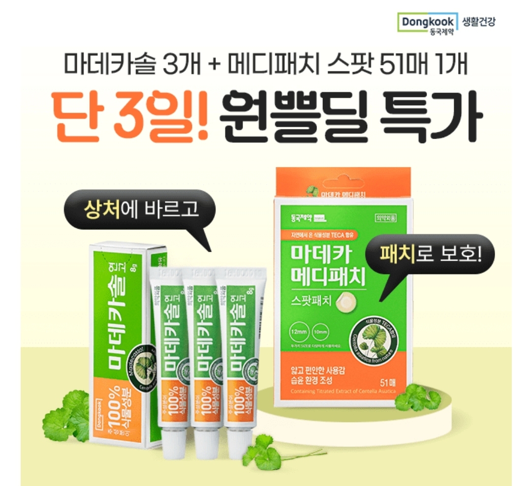 단 3일! 원쁠딜 특가! 주성분 100% 식물성분 마데카솔과 덧나지 않게 보호하는 마데카 메디패치 스팟패 치!