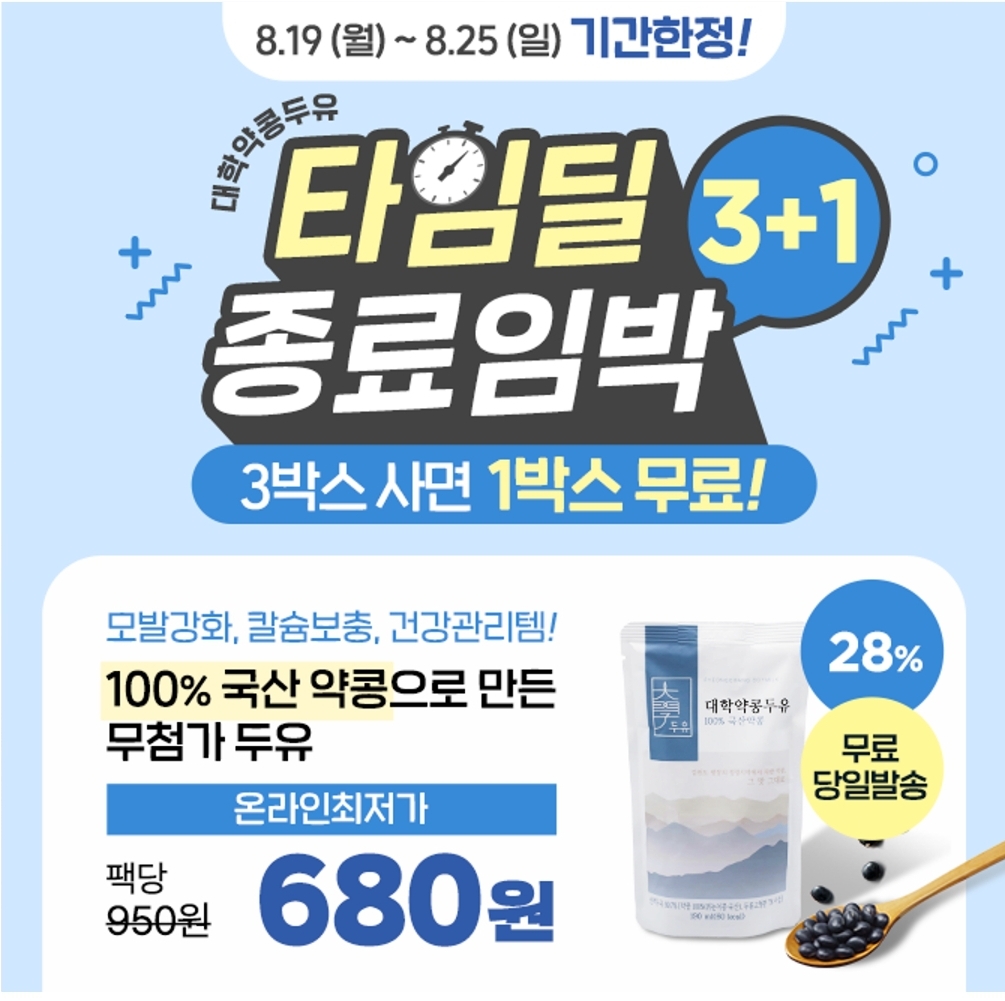 [무료증정 종료임박] 대학약콩두유 타임딜! 1박스 무료증정 & 온라인최저가 혜택이 곧 종료됩니다!