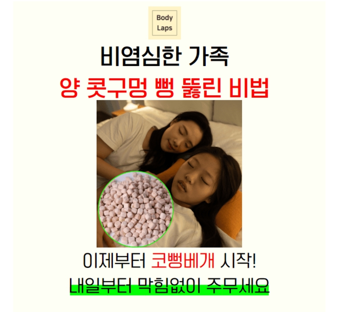 집먼지 진드기 노출에 가장 취약한 베개. 일반 베개는 비염으로 가는 지름길이다. 바디랩스는 1200만 비염인들을 위해 국내산 0000 편백 을 사용하여 코뱅베개 를 출시, 막힘없는 편안 한 잠을 선사하였다. (힌트: ㅍㄹㅁㅇ)