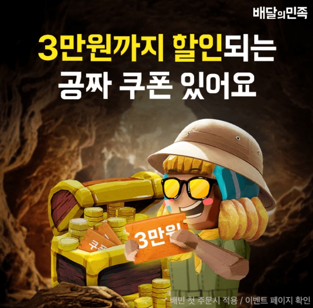 배달의민족 첫 주문하면 000% 할인 쿠폰을 받을 수 있어요! 빈칸에 들어갈 숫자는 무엇일까요? (힌트: 이미지에서 확인하실 수 있어요!)