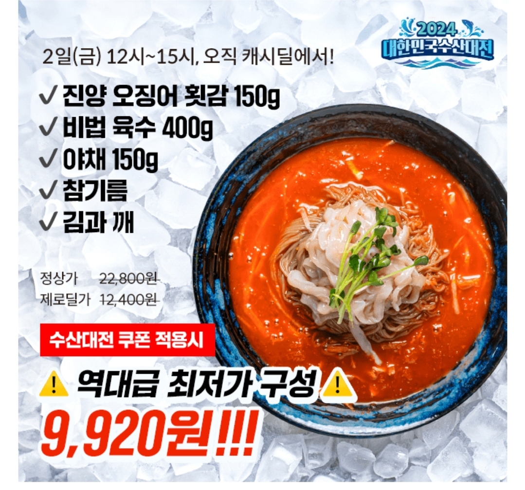 [수산대전] 속초맛집, 진양횟집 오징어 물회 초특가! 캐시워크 돈버는퀴즈정답 8월2일 금요일