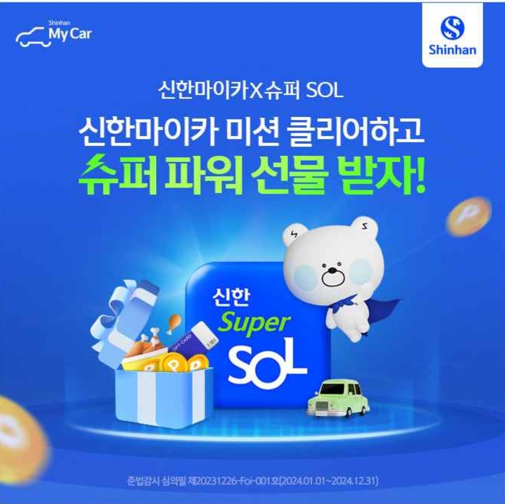 슈퍼SOL 앱 다운받고,마이카 미션 클리어하면 혜택 가득 상품을 드려요!