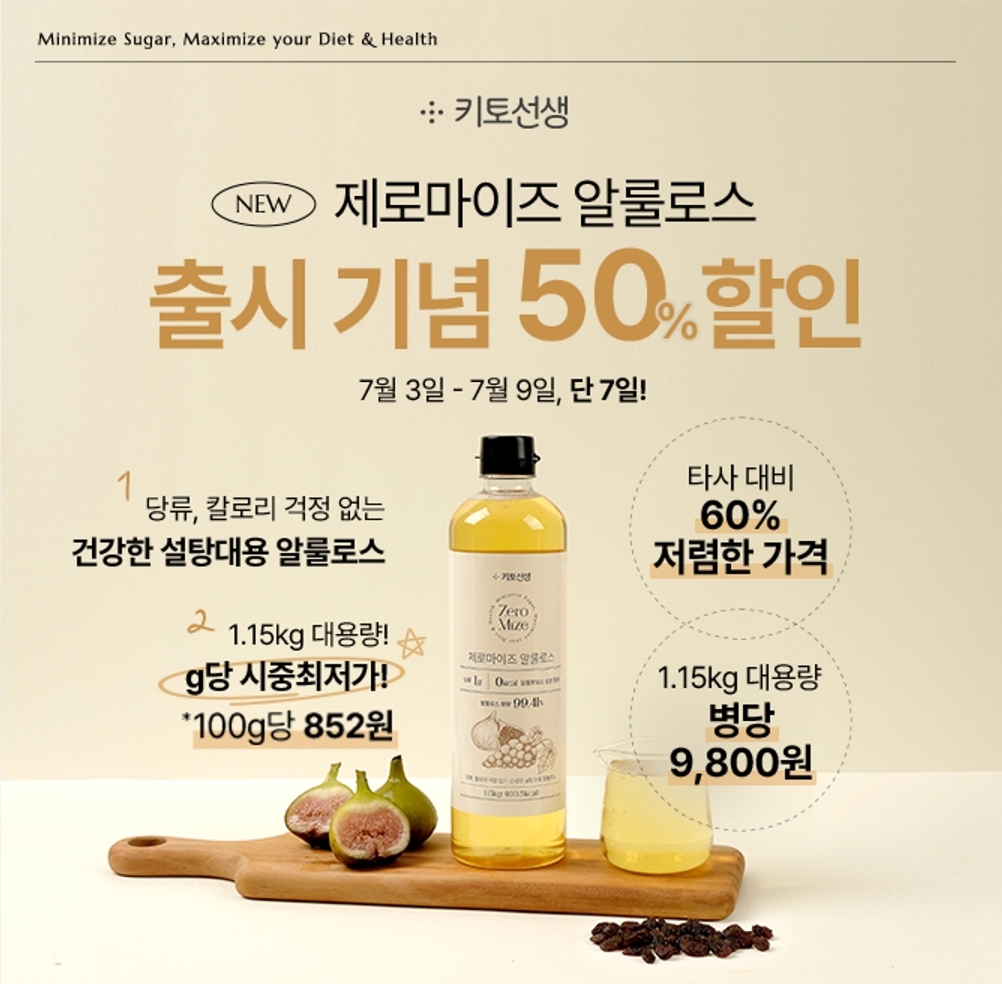 제로마이즈 알룰로스 출시 기념 50% 할인 이벤트 오픈! 단 7일간 1.15kg 대용량 알룰로스가 단돈 9,800원! 용량은 UP~ 가격은 DOWN!