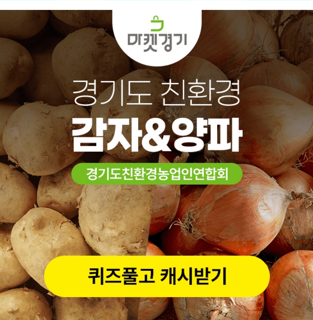 마켓경기 특가 기획전으로 경기도 친환경 000 햇양파 3kg 7,200원과 햇감자 3kg 9,200원에 무료배송으로 바로 내일(06.25) 14시에 소개합니다 내일 많은 관심과 구매 부탁드립니다!! *상품명에서 정답을 확인해보세요!