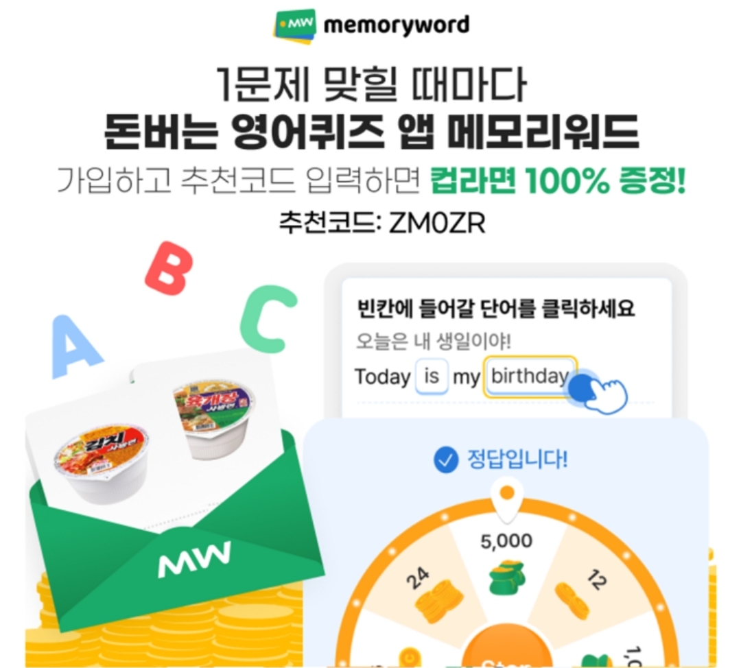 영어퀴즈 1문제만 풀어도 돈버는 앱 메모리워드