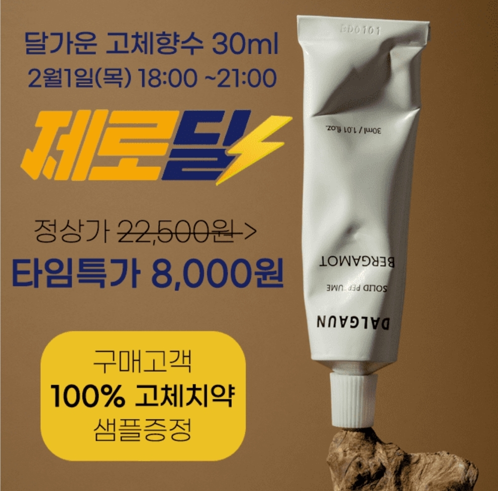3시간 동안 진행되는 "캐시딜" 타임특가에서 솔리드퍼퓸! 달가운 고체향수 30ml 이 역대급 할인 8,000원+무료배송에 진행됩니다.
