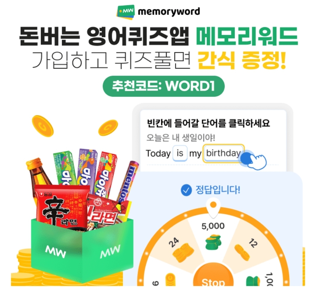 지금 메모리워드에서 퀴즈 1문제만 풀면 간식