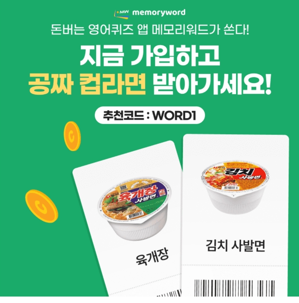 지금 메모리워드 가입하면 컵라면 100% 증정'