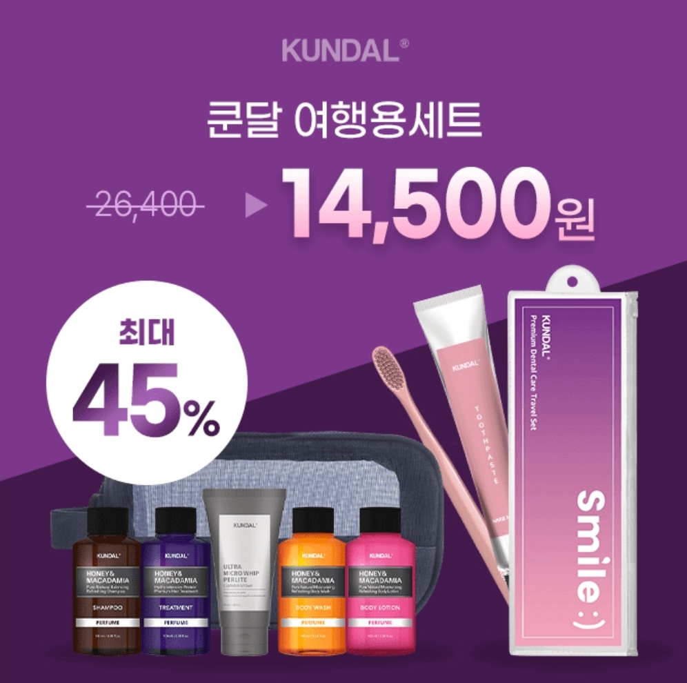 쿤달 여행용세트&휴대용 치약칫솔 세트 45% 할인