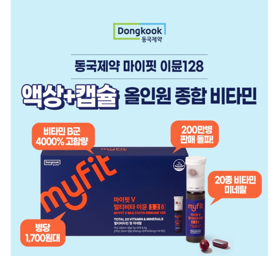 동국제약 마이핏 이문128은 20종 비타민 미네랄과 아연 등을 한번에 섭취할 수 있는 종합 비타민인데요! 00이 필요한 순간, 하루 한병