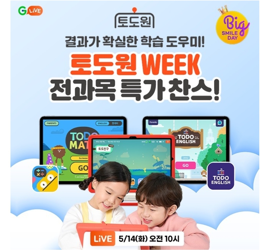 빅스마일데이 토도 WEEK G마켓 00 혜택! 결과가 확실한 학습 도우미 '토도 한자녀/두자녀 원하는 혜택을 빅스마일데이 특별가로 경험해보세요!