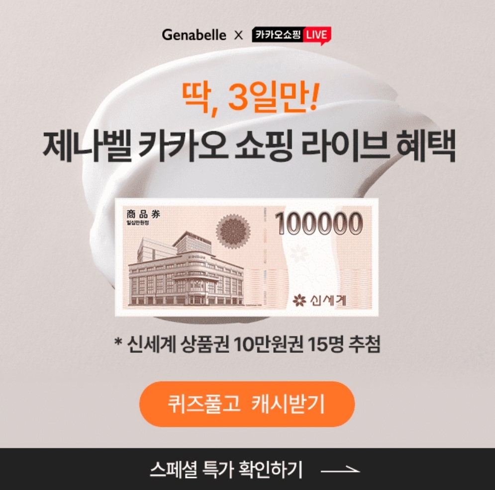 "제나벨 카쇼라에서 구매하고 신세계상품10만원권 당첨 기회 놓치지마세요"