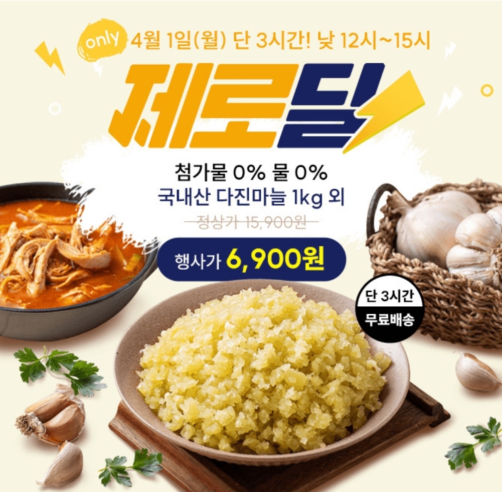 첨가물 0% 물 0% 국내산 다진마늘 1kg 6900원 캐시워크 돈버는퀴즈정답 4월1일 월요일