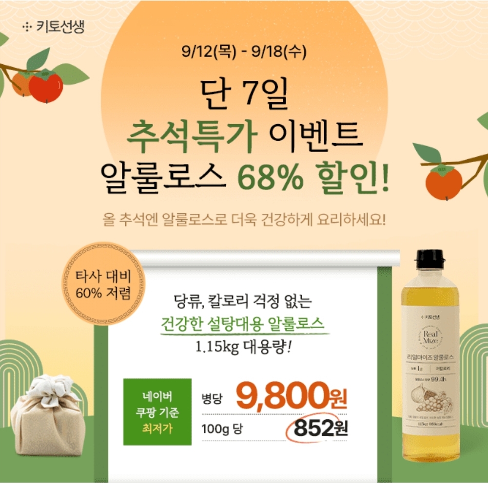 3[추석 특가] 단 7일간 리얼마이즈 알룰로스 68% 할인! 올 추석에는 알룰로스로 더욱 건강하게 요리하세요!