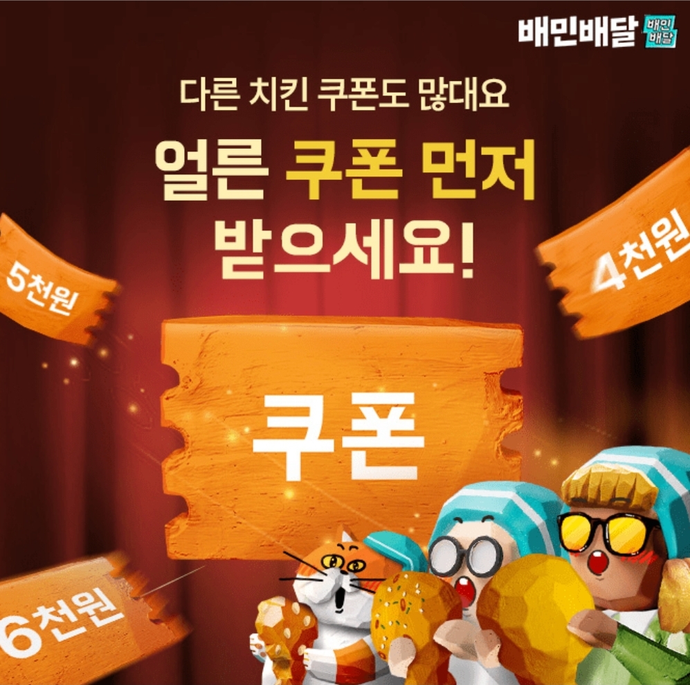 치킨, 할인 쿠폰 받고 주문해요~
