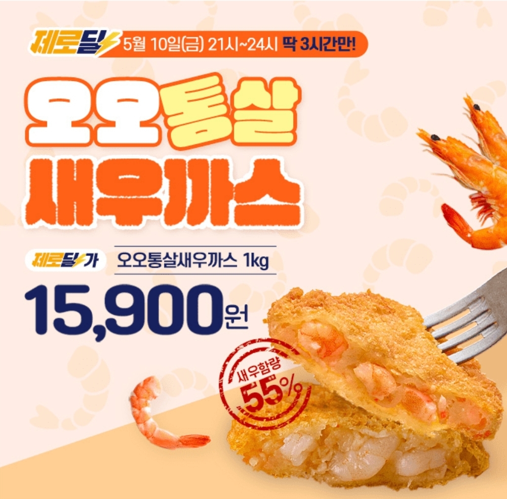 3시간 동안 진행되는 "캐시딜" 타임특가에서 55% 새우 함량! 오오통살