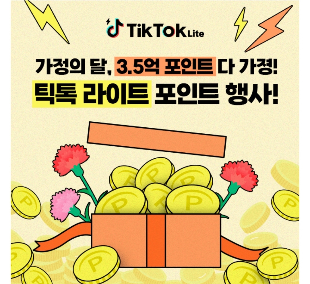 틱톡 라이트 가정의 달 3.5억 포인트 이벤트!
