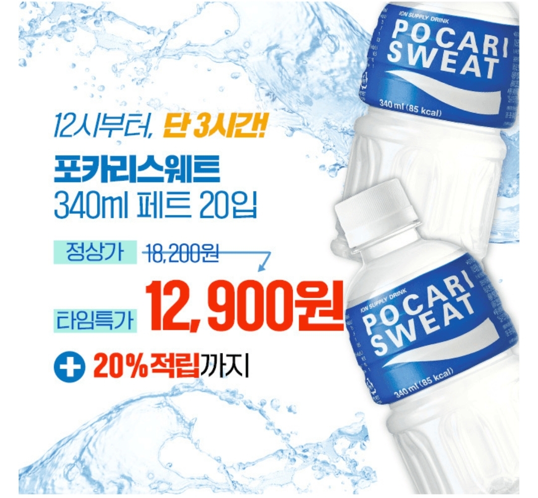 포카리스웨트 340ml 20입 = 12900원+20%적립