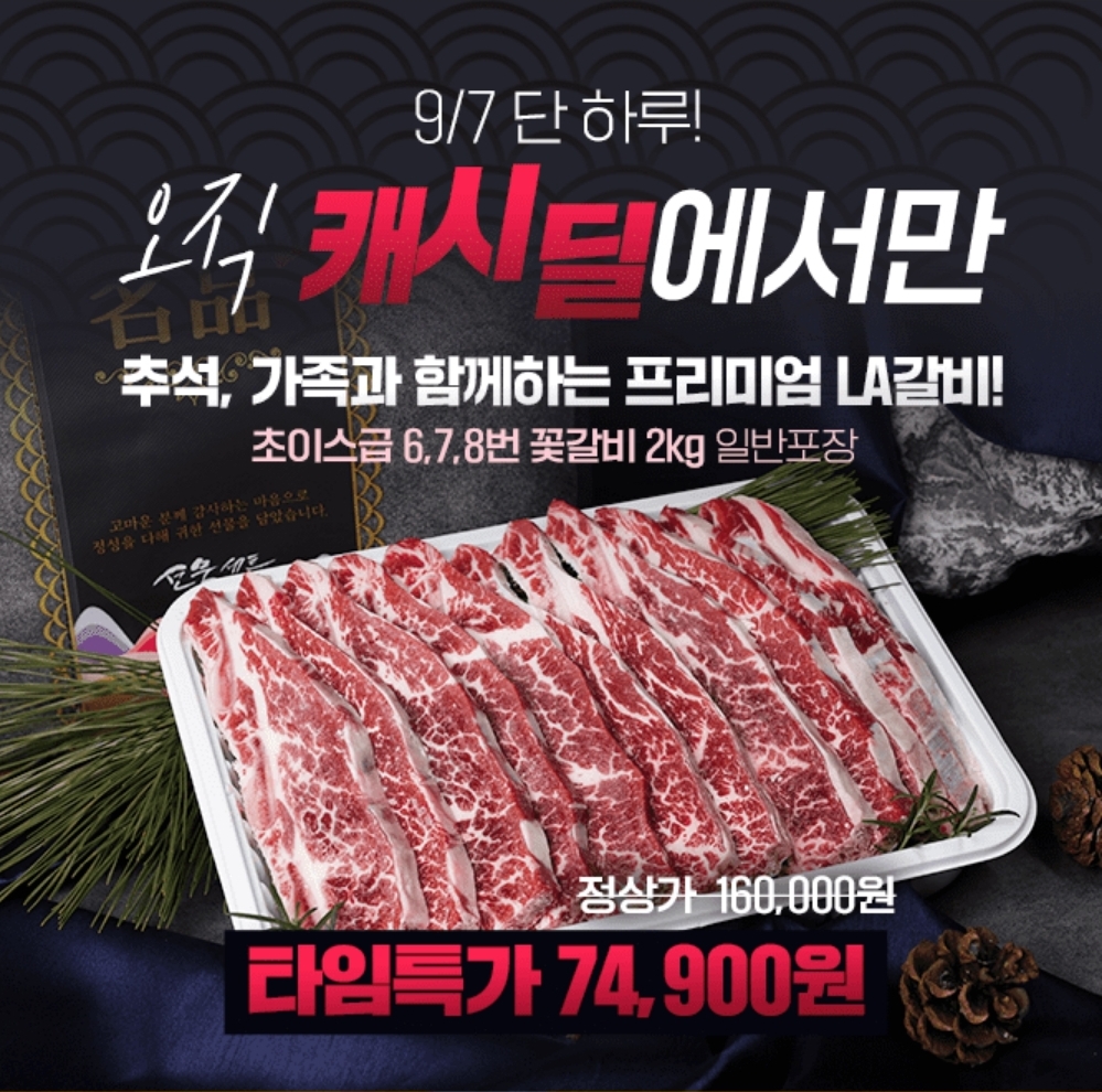 한땀갈비 미국산 초이스등급 꽃갈비 2kg 역대급 할 인! 캐시워크 돈버는퀴즈정답 9월7일 토요일