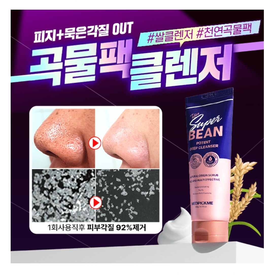 '메디픽미 라이브 슈퍼빈 딥 클렌저'는 ㅇㅇ입자로 이루어져 있어,자극을 최소화할수있는데요! 마사지하듯 가볍게 문지르면 묵은각질과 노폐물을 씻어낼 수 있습니다. 촉촉한 영양보습에 도움을 주는 ㅇㅇ은 무엇일까요?