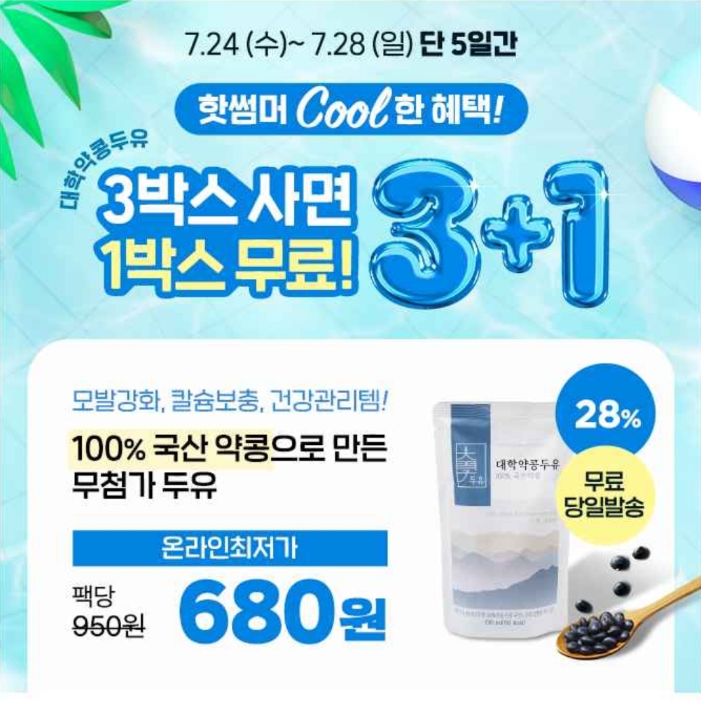[무료증정] 핫썸머 Cool한 혜택! 대학약콩두유 1박스 무료 & 온라인최저가 팩당 680원! (*단 5일!)