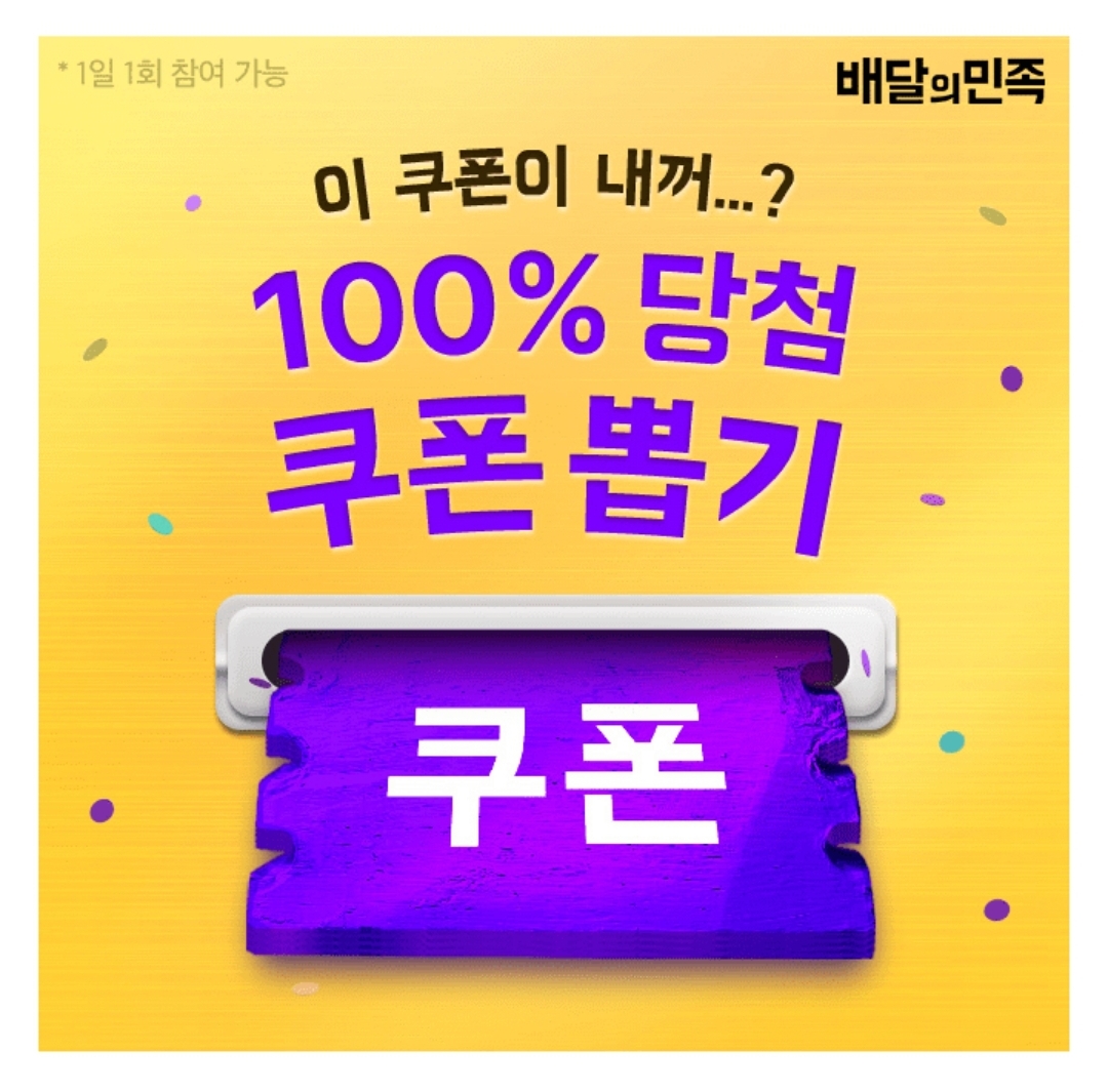 배달의민족에서는 처갓집양념치킨 최대 2만원 할인 쿠폰을 0000 뽑을 수 있어요! 빈칸에 들어갈 단어는 무엇일까요? (초성힌트: ㅁㅇㅁㅇ)