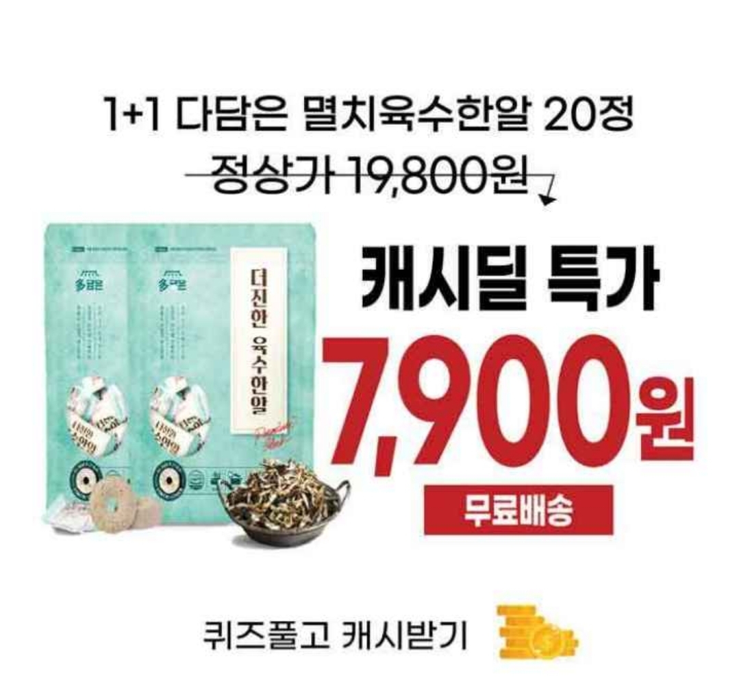 1+1 다담은 멸치육수한알 20정 캐시워크 돈버는퀴즈정답 9월27일 금요일